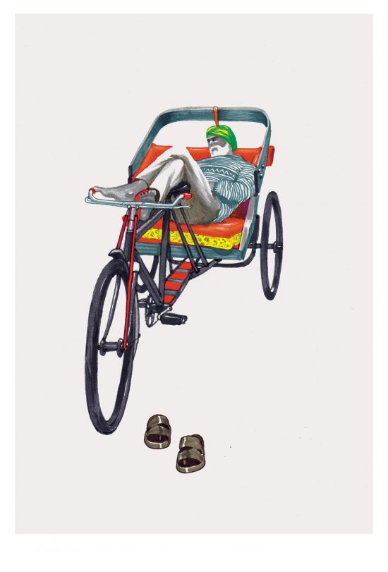 This high quality art-print on acid-free ‘Hahnemule paper’ is from The Ghoda Cycle Project which was originally a poster-book (now sold-out) first self-published by my studio Bombay Duck Designs, in 2012. The drawings from this series were exhibited at the Bicycle Film Festival in 2012 at WDC (World Design Capital) Helsinki. They were later part of a unique collaboration with iconic British fashion brand Paul Smith that resulted in four T-shirt designs that were available worldwide in 2013.