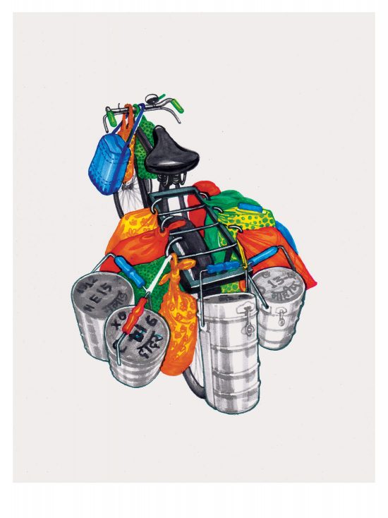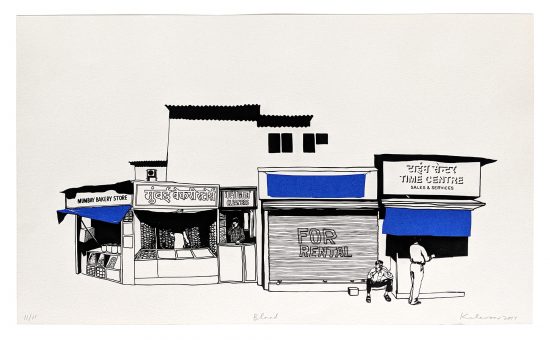 Curve is a 3-colour serigraph from the ‘Kodava’ series of non-representational drawings of shapes, loosely based on structures of graphs and imagined algorithms. I started making these drawings, immediately after ‘A man of the crowd’ – my solo show at TARQ in mid 2018 – while on a break in Coorg and later in Bengaluru. This particular serigraph on pink A4 sheet was made by hand, drawing the three layers separately on OHP sheets (positive) and later exposing them onto the screen. The whole process was completed in one day at Pritam Arts – a family run screen printing studio in Fort, Mumbai.